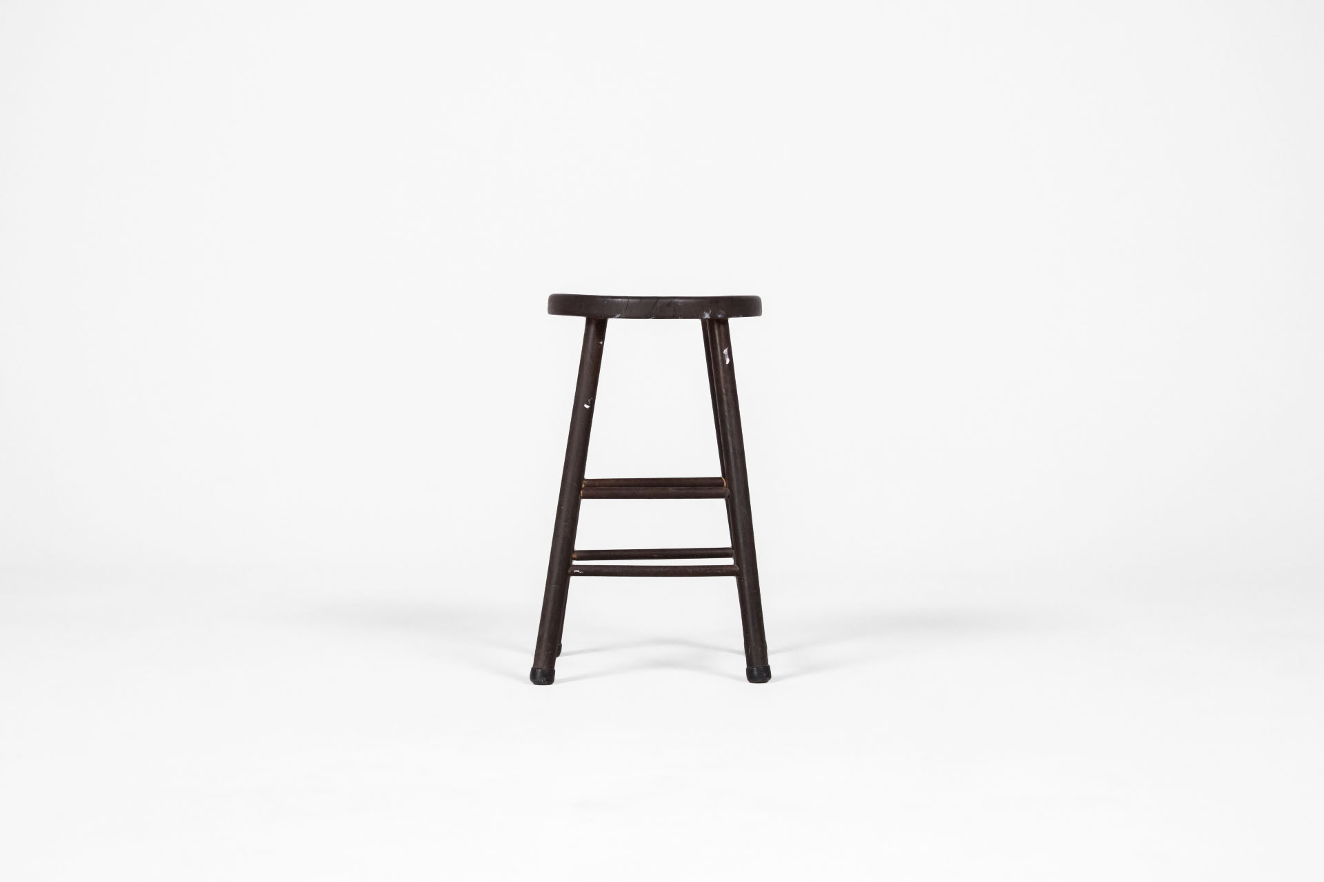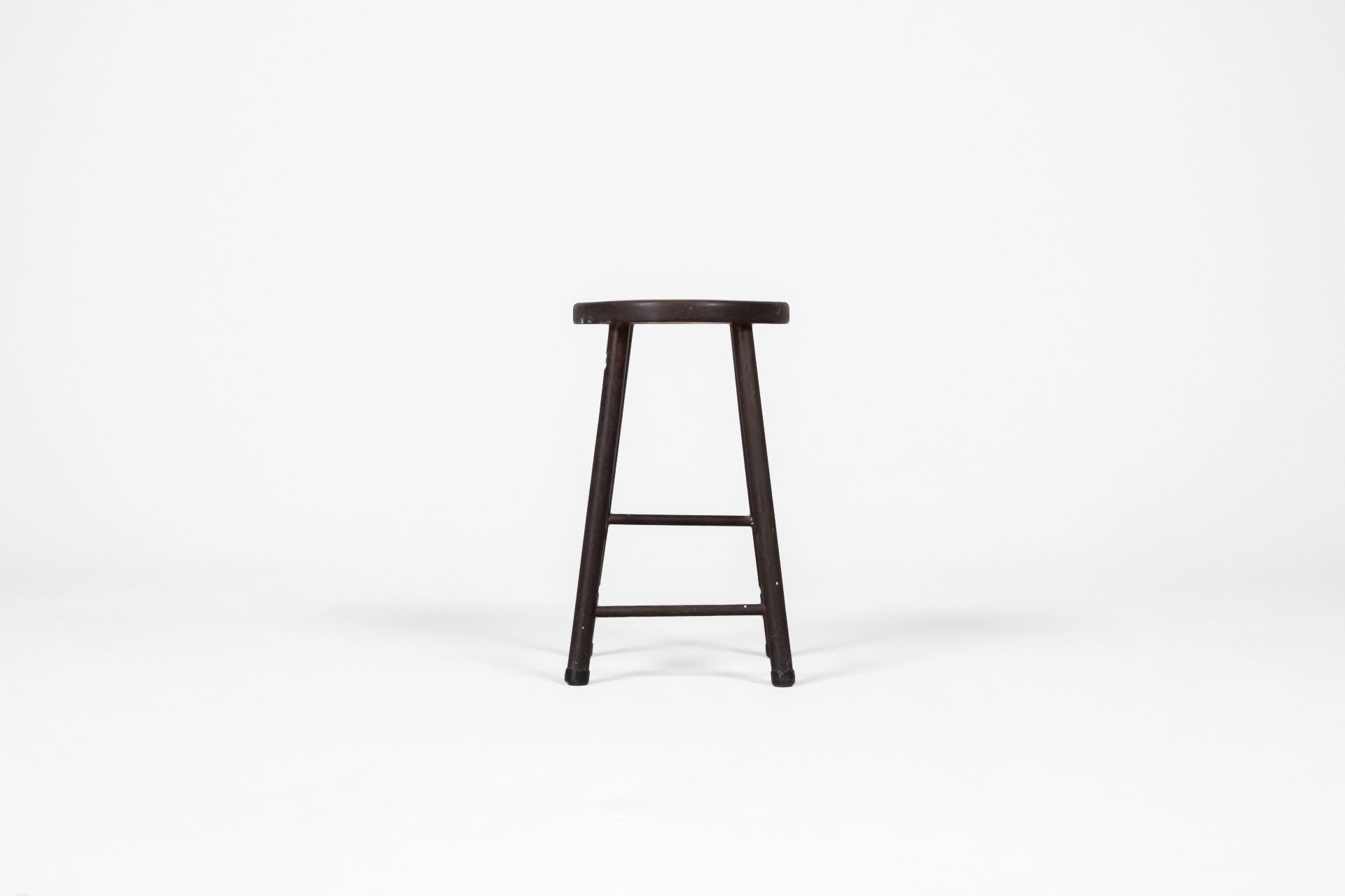 Egyszerű, de funkcionális fekete fa bárszék, kerek ülőfelülettel. A minimalista dizájn és a letisztult vonalak lehetővé teszik, hogy bármilyen enteriőrbe könnyedén beilleszthető legyen